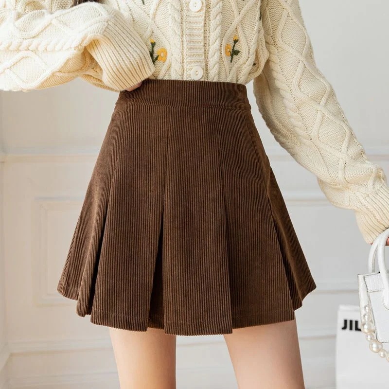 春秋用コーデュロイミニスカート(女性用) 2025年韓国風新作 透け防止プリーツスカート Aラインパンツスカート 若々しいミニスカート