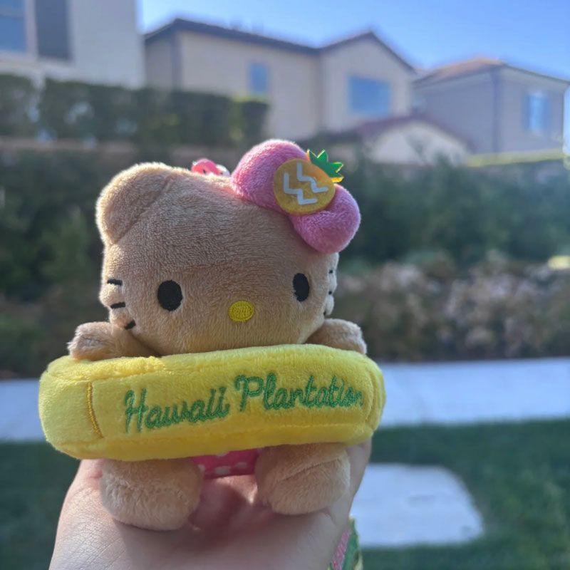 新品ハワイアンシリーズハローキティぬいぐるみストラップぬいぐるみkt猫黒革かばんチャームぬいぐるみ