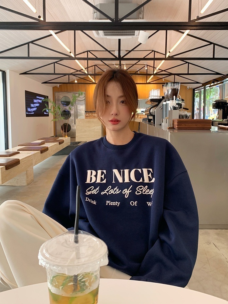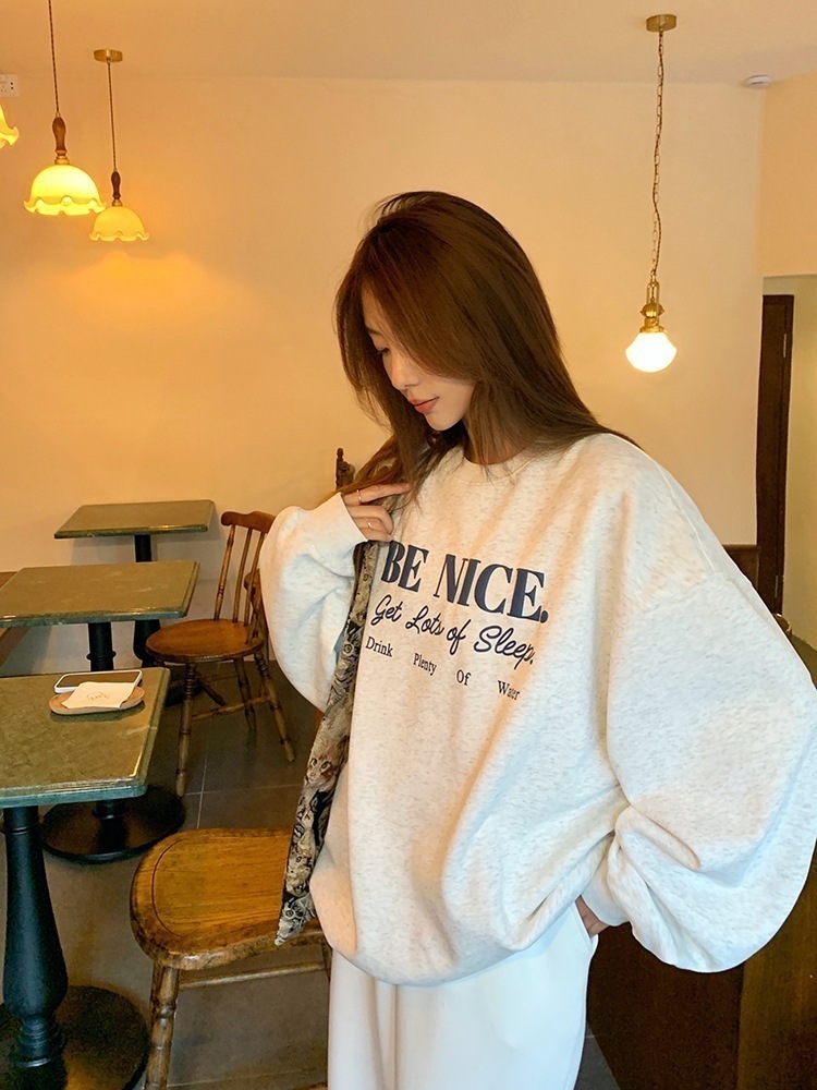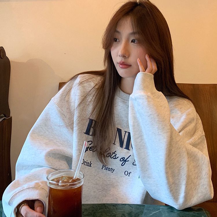 【3日出荷】韓国版ファッションプリント衝突色長袖衛衣婦人服ゆったりダウン厚手2025冬新作トップススウェット トップス
