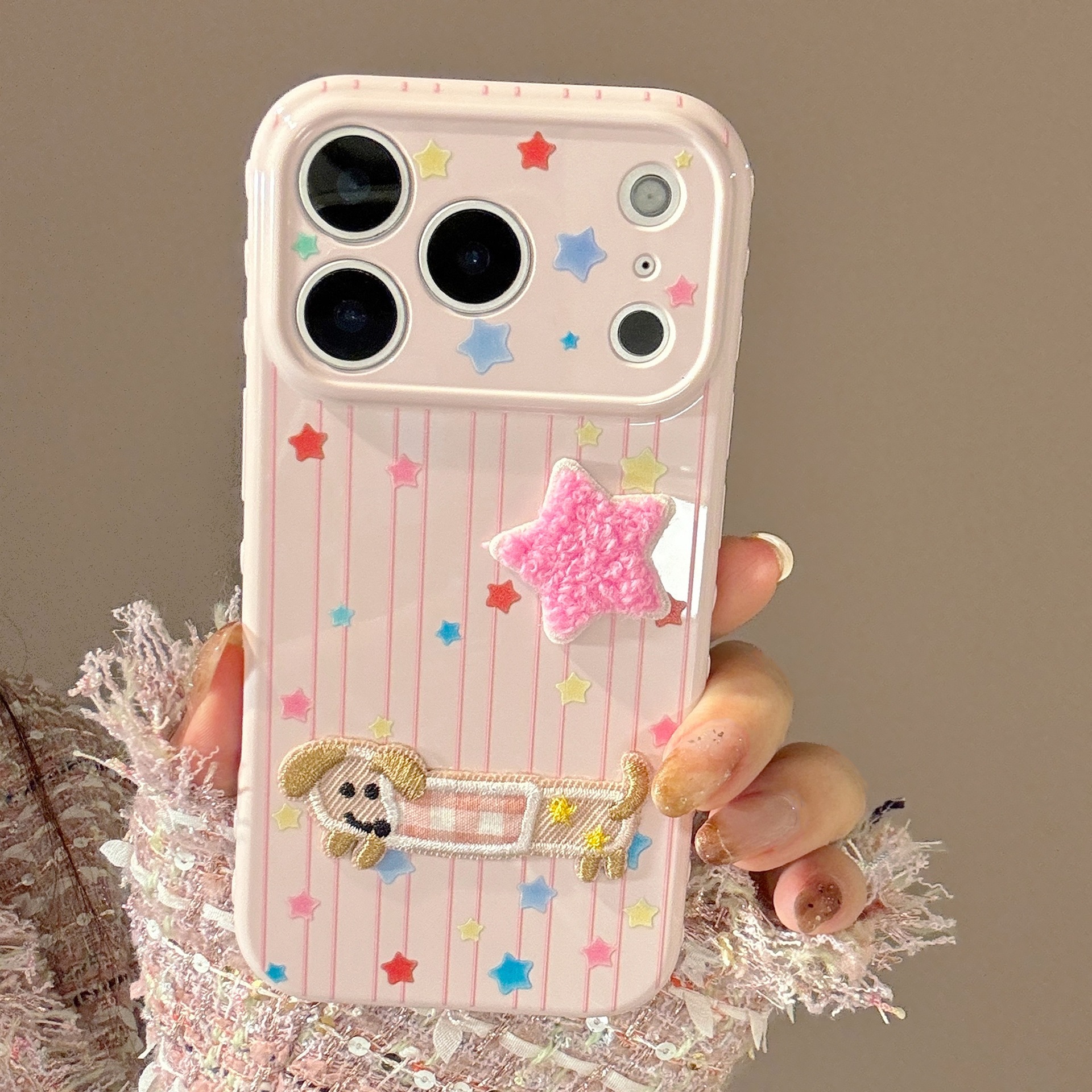 【2枚購入で2 0 0円OFF】iPhone17/17Pro/17Pro Max対応 刺繍入りもこもこケース わんちゃんにゃんこ 星 動物 側面立体ハート 3色 ギフト ペア とても可愛い 全面保護