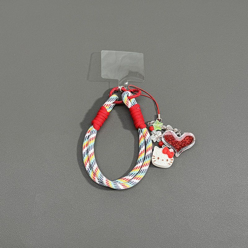 超人気Hello Kitty ブレスレット型携帯ストラップ キャラクターチャーム 赤いグリッターハート 可愛いデザイン 多機能 手首装着 / 落下防止 スマホ / バッグに対応 女子向け人気アイテム