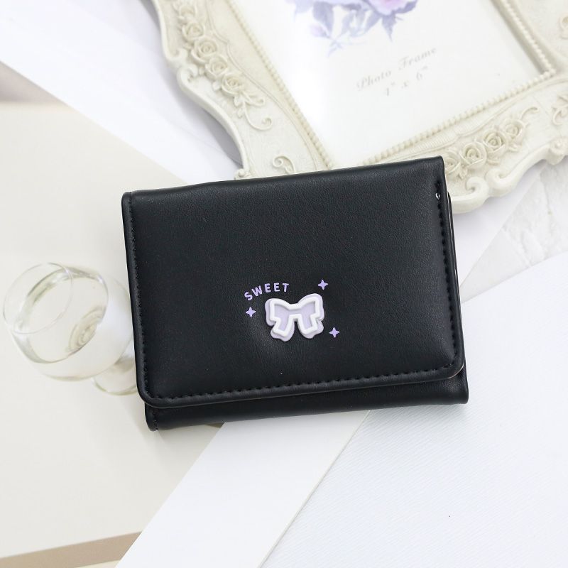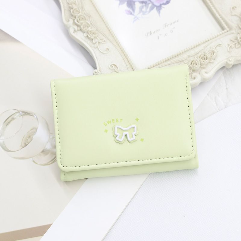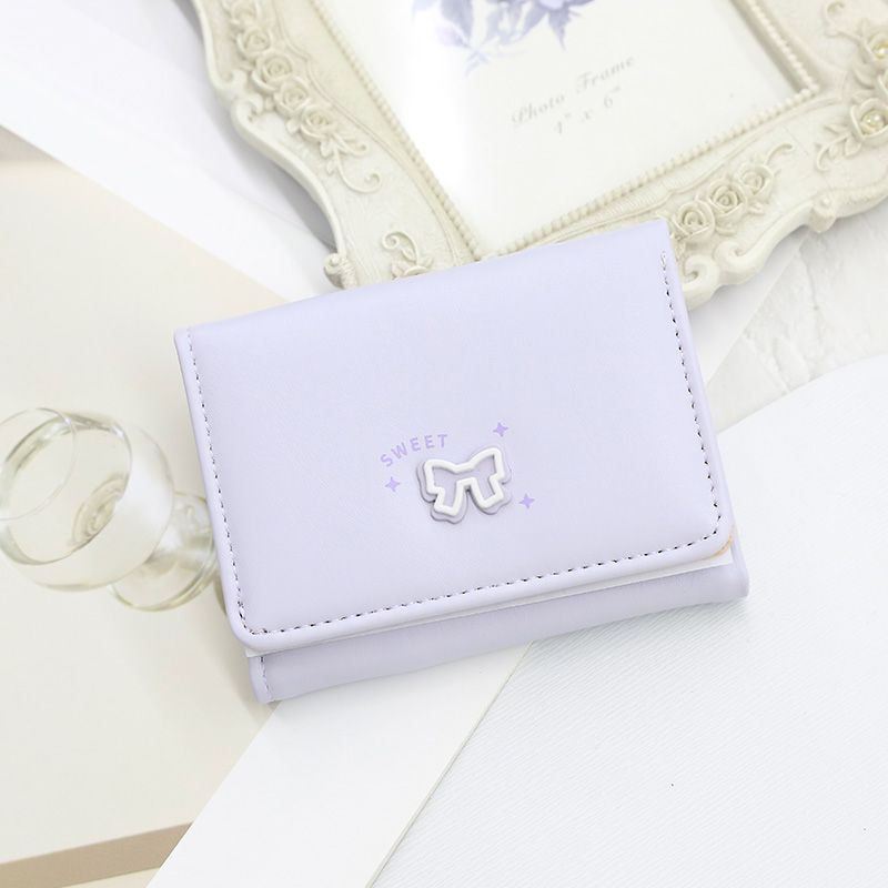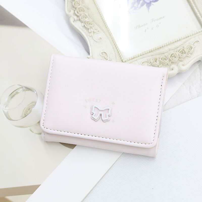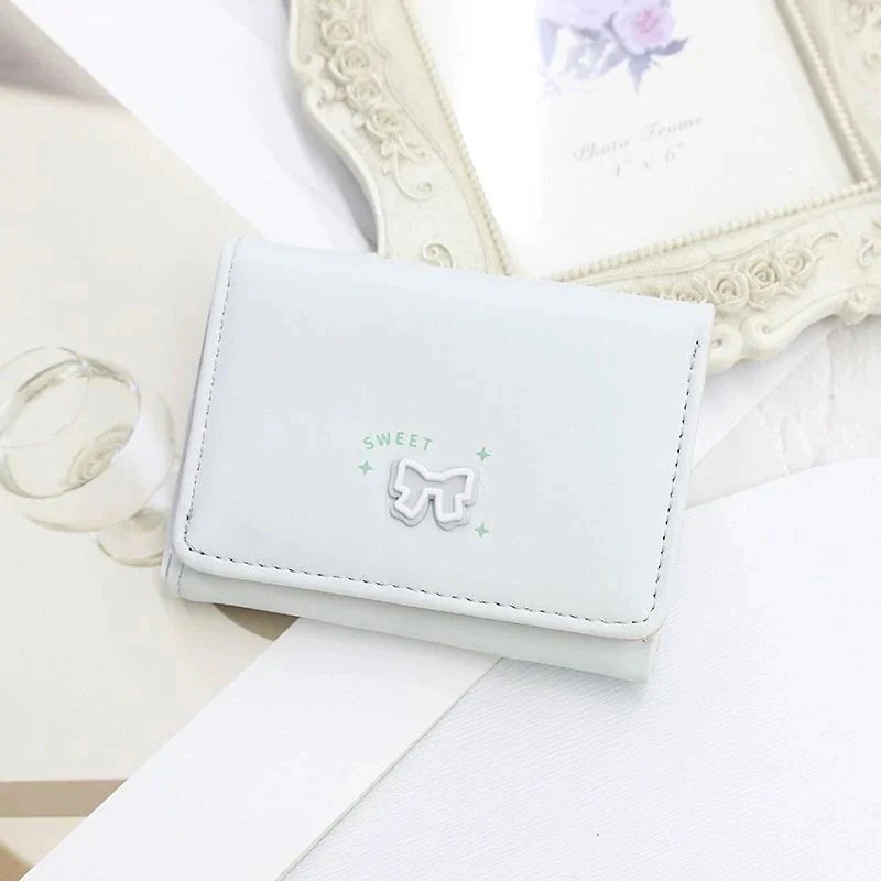 【韓系蝶結び INS 風】学生向け三つ折り財布 レディースショートタイプ 高級感カードホルダークリップ付き