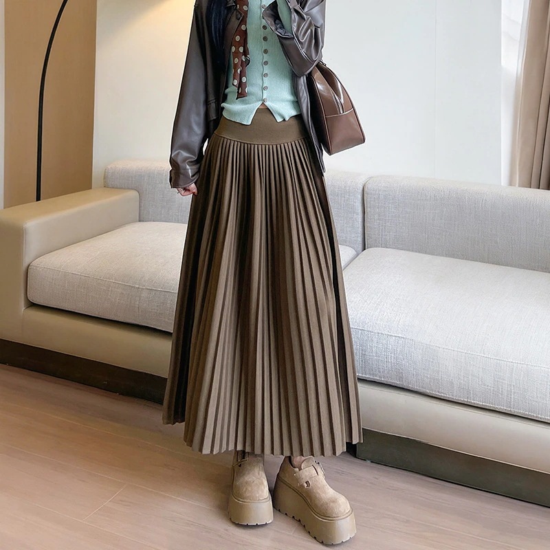 ウール プリーツスカート レディース2025新作 ハイウエスト ミディ丈 スカート プラスサイズ フレアスカート