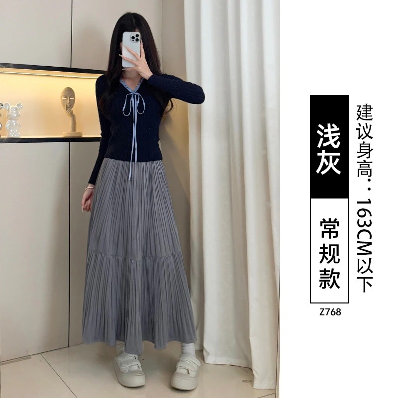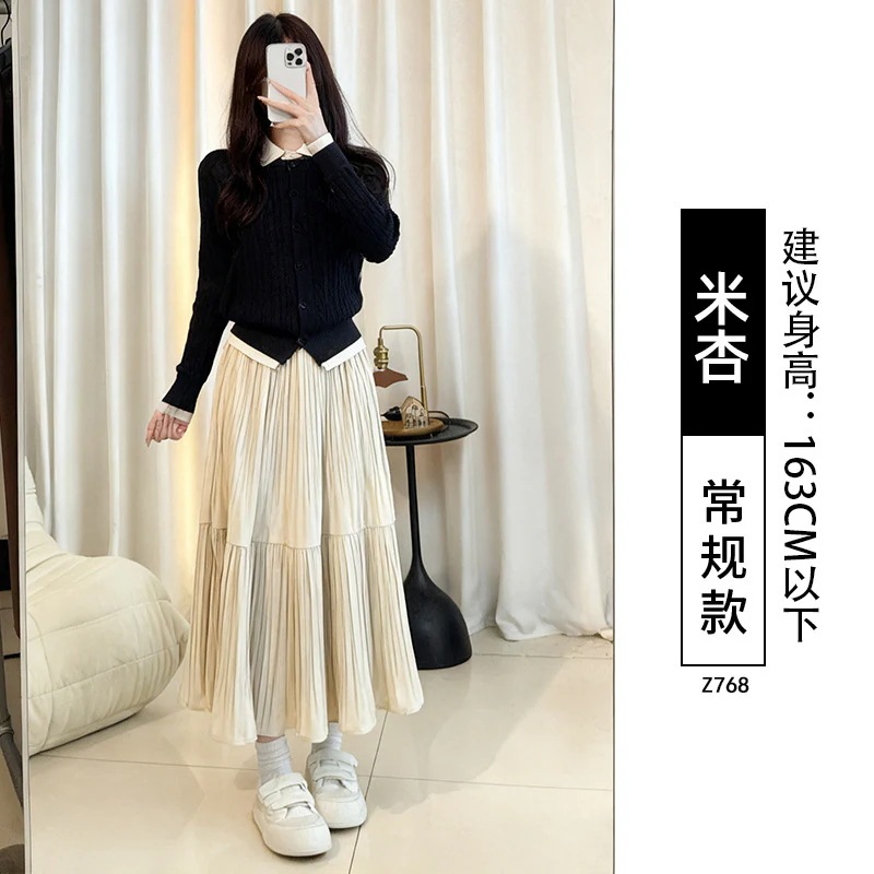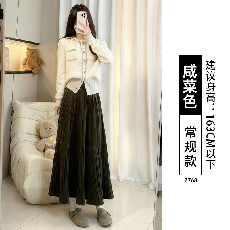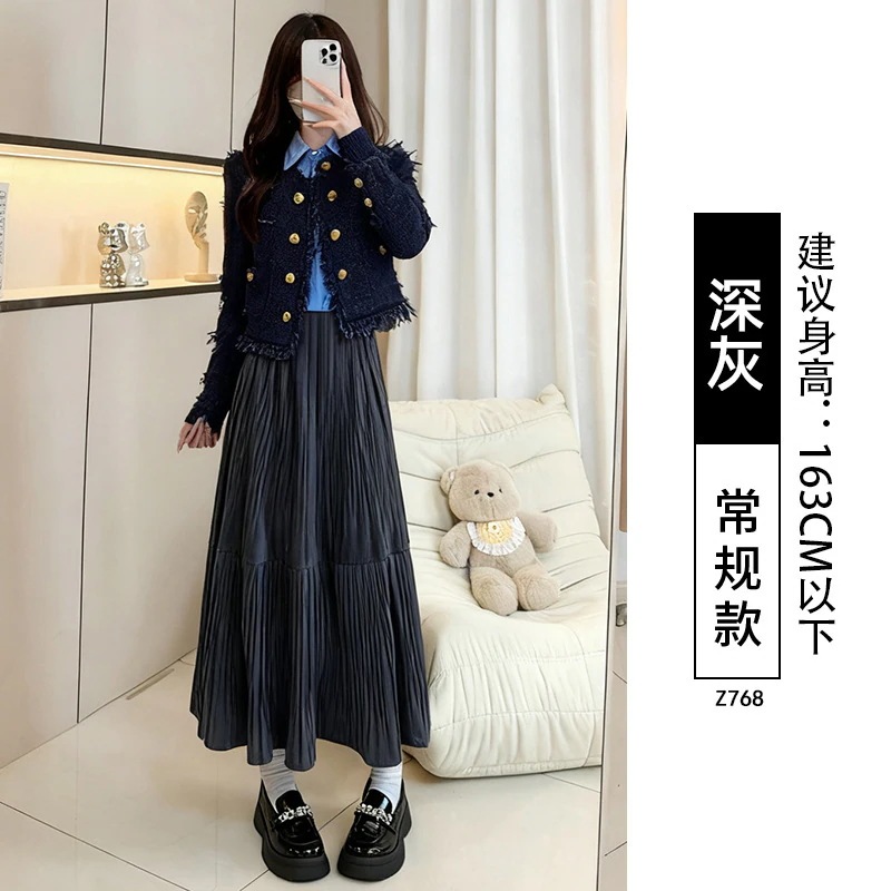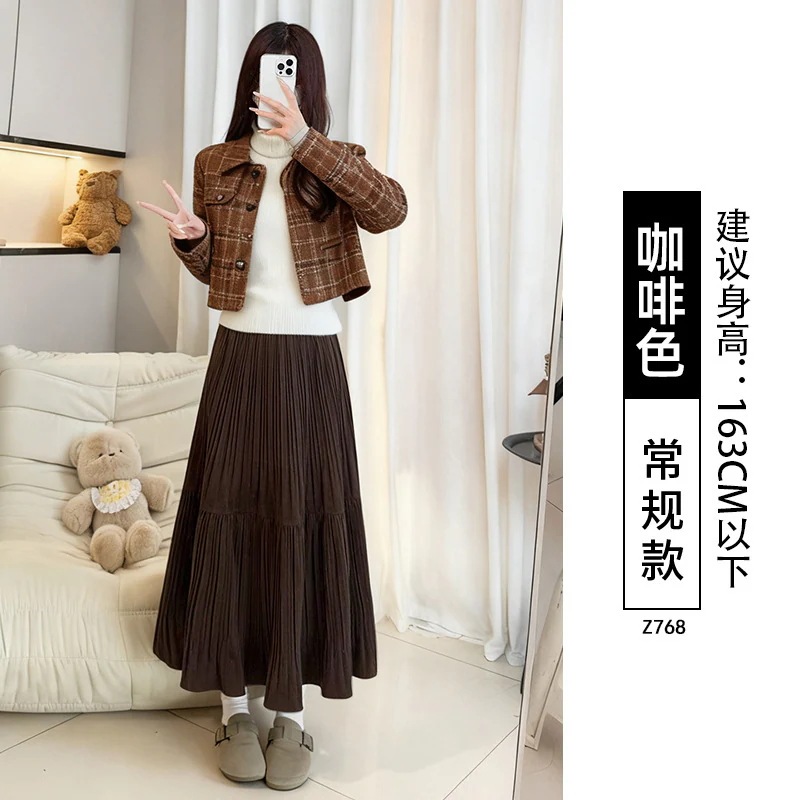 ベルベットプリーツスカート レディース秋冬ロングスカート プラスサイズ ぽっちゃり体型 梨型体型 ヒップカバー 細身効果 フレアスカート