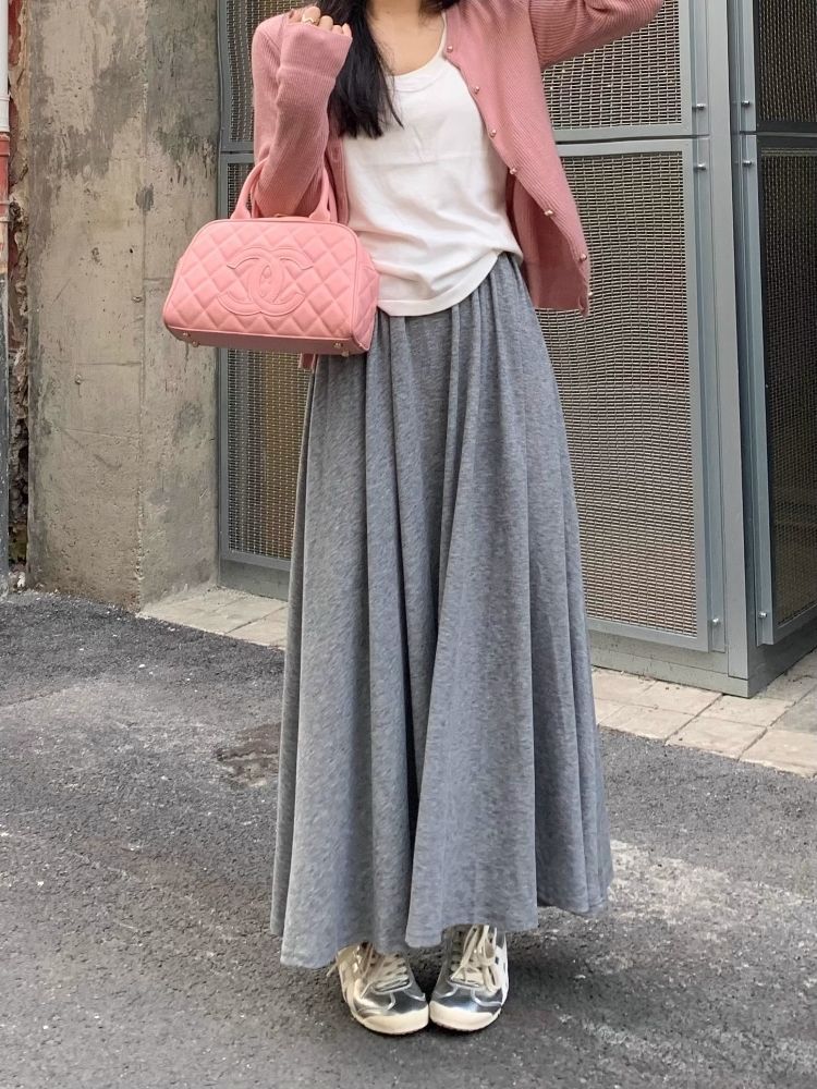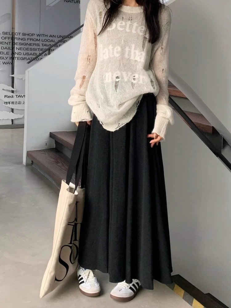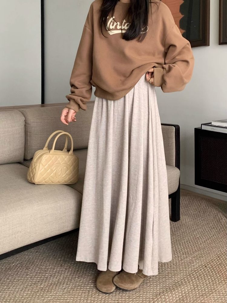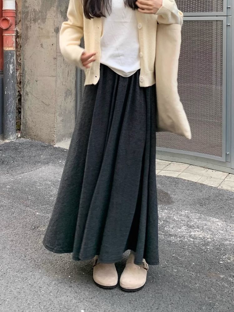 カシミヤ風ビッグサイズゴム入り2025ハイウエストスカート ノミ新作 ゆるっとドレープロングスカート ゆったり細身効果スカート