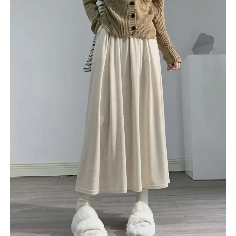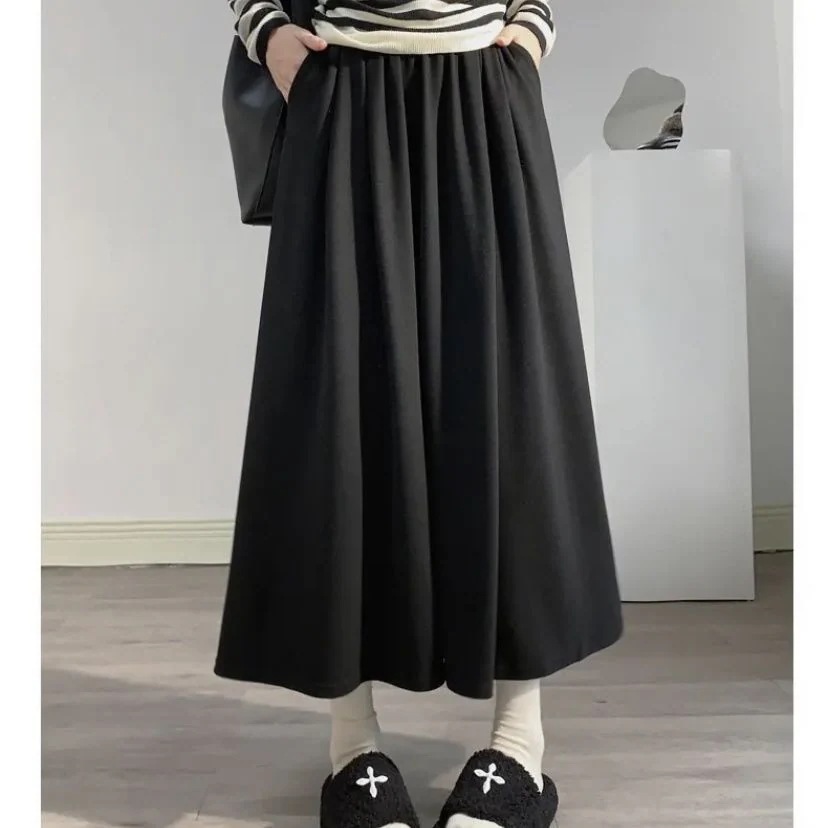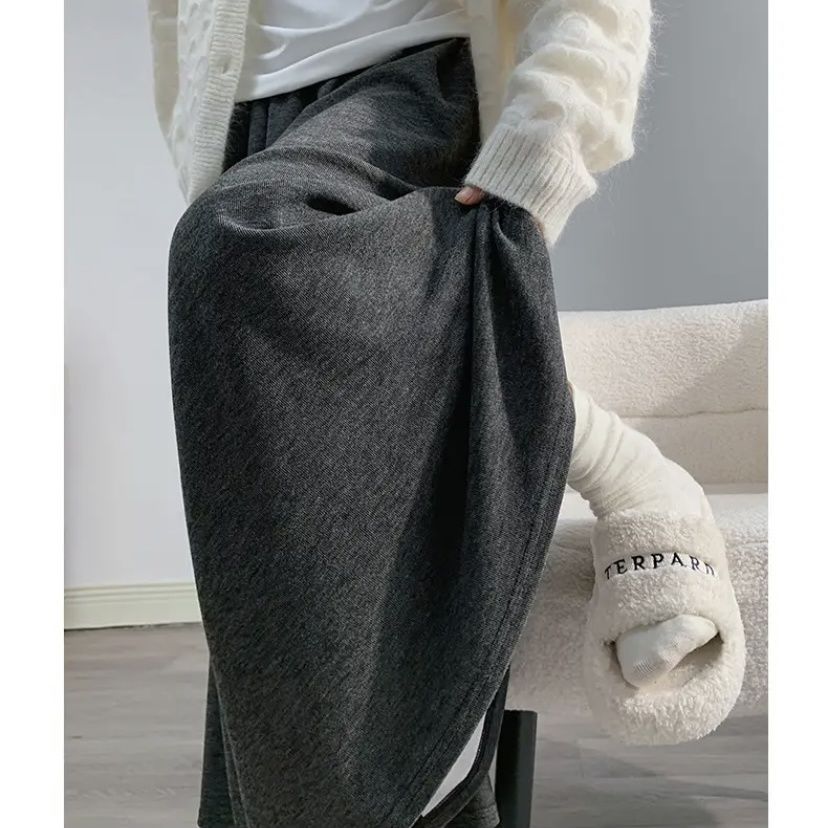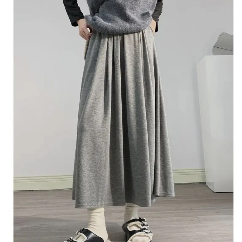 2025年カシミアロングスカート 女性秋冬ドレープ感クラウド新作ハイウエスト万能スリム糯米カジュアルスカート