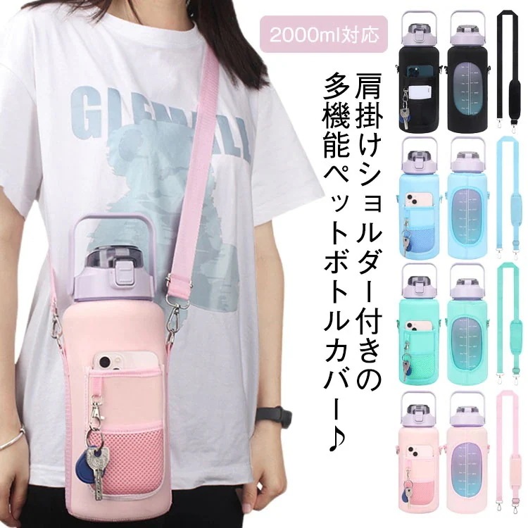 水筒ケース 水筒カバー 子供 ホルダー おしゃれ ポケット付き ペットボトルカバー 肩掛け グラデーション ショルダー 大人 斜め掛け 断熱 保護カバー 水筒キャリアカバー アウトドア ボトルホルダー