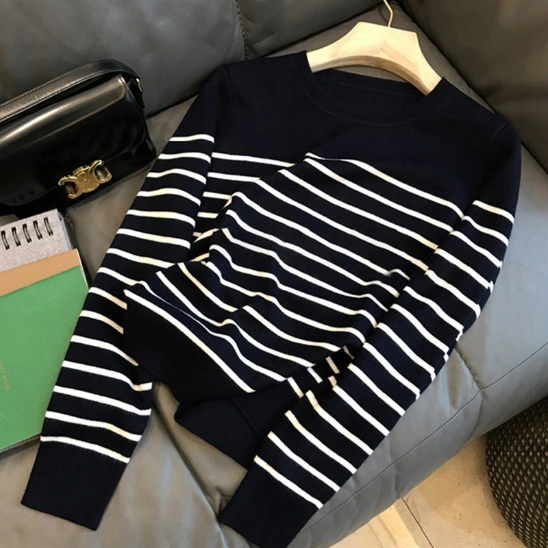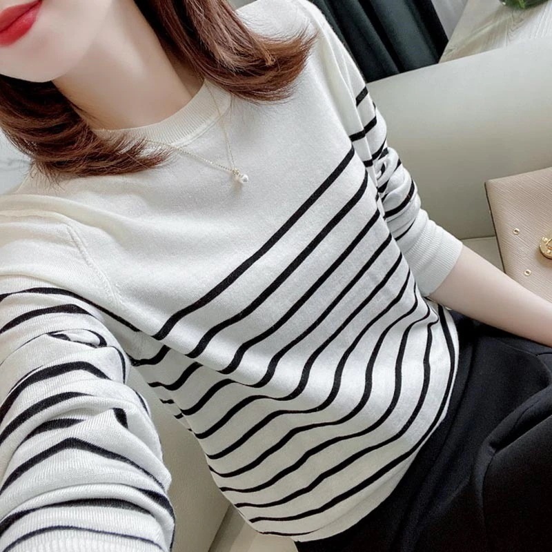 韓国版白黒ストライプセーター女性インナー 2025新作プルオーバー女性長袖プルオーバー秋冬ニットトップスセーター