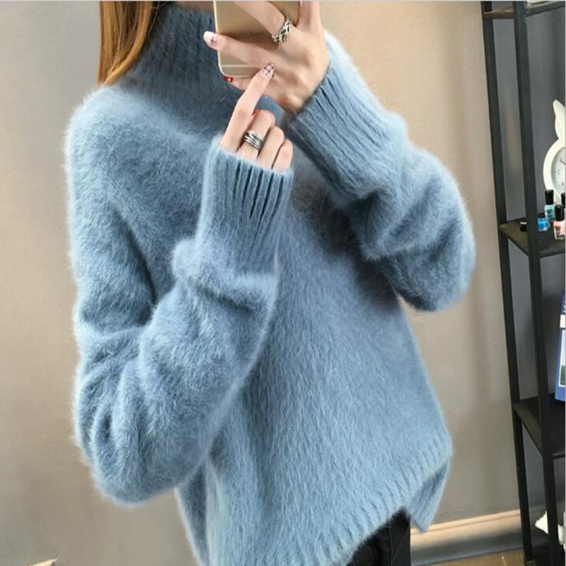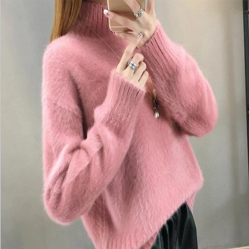 レディース厚手ミンクフリースセーター 2024年新作秋冬韓国風ゆったり着回し半ハイネックインナーニットセーター