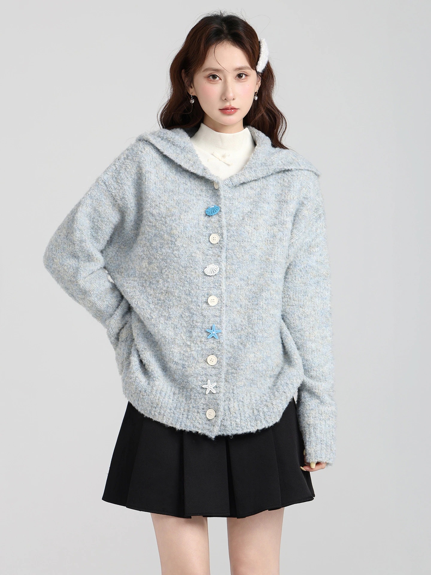 【人気商品】甘め優しい風キャップ付きセーターコート秋冬上品けだるい風トップス