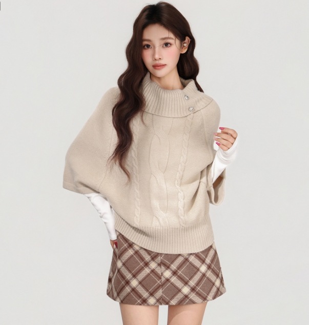 【人気商品】2026新作だるい風タートルネックセーターレディースデザイン感マント厚手ニットトップス
