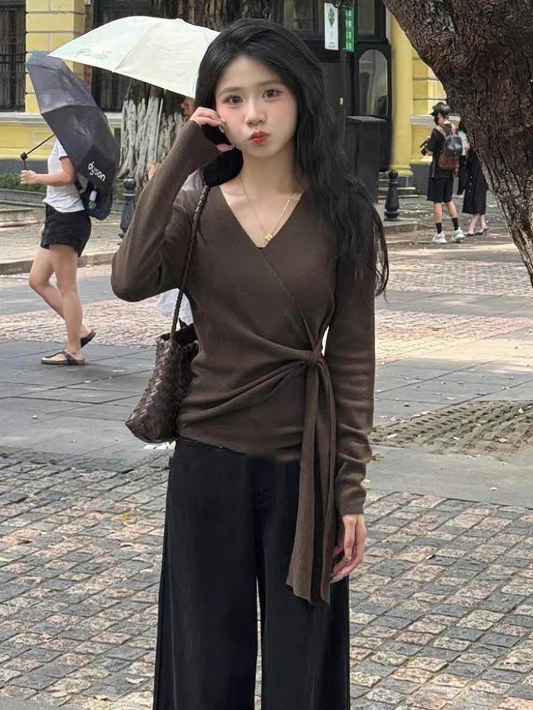 【人気商品】ニットクロスバインダートップス新作スリムダウンカーディガン