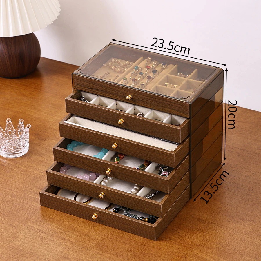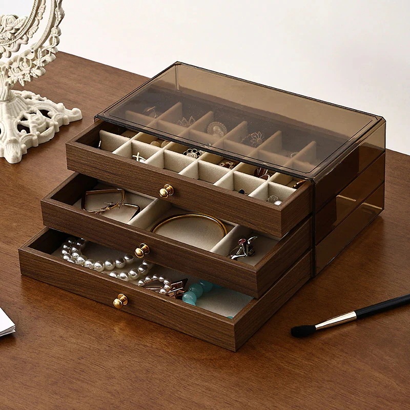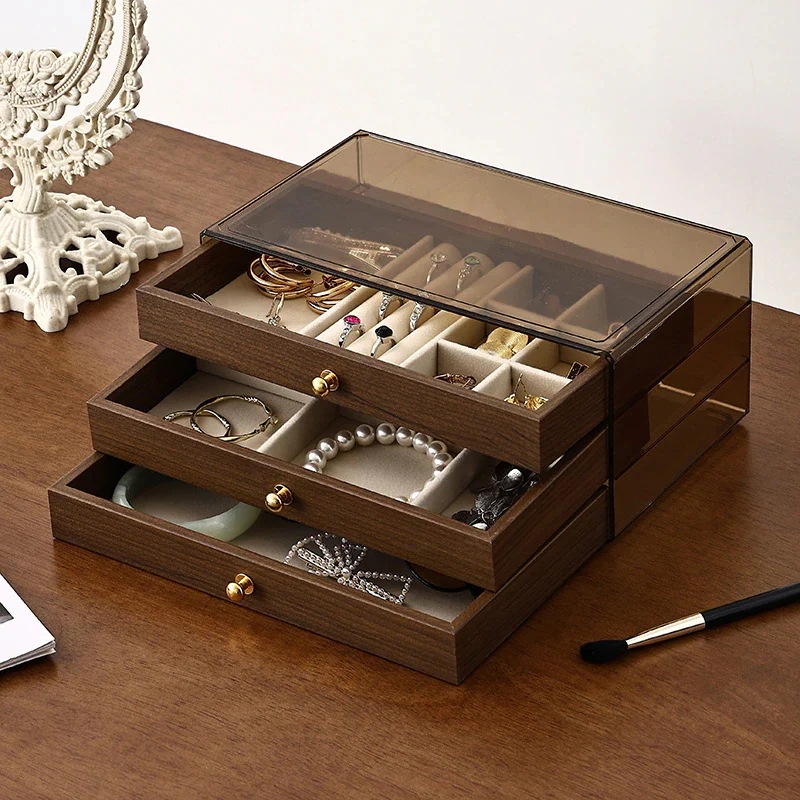 今日大特価引き出し式アクセサリーボックス 天然木ウォールナット調ジュエリーボックス 防湿・防塵3in1ジュエリー収納ボックス 多機能ジュエリーボックス