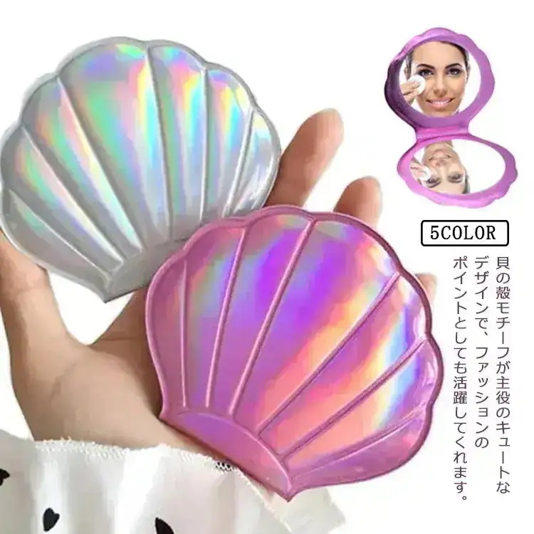 コンパクト ミラー 鏡 折りたたみ 両面 拡大鏡 貝の殻 手鏡 キラキラ 携帯用 鏡 メイク 化粧 スキンケア 化粧直し 女性 鏡 ハンドミラー メンズ レディース ミニ 小さめ 軽1342