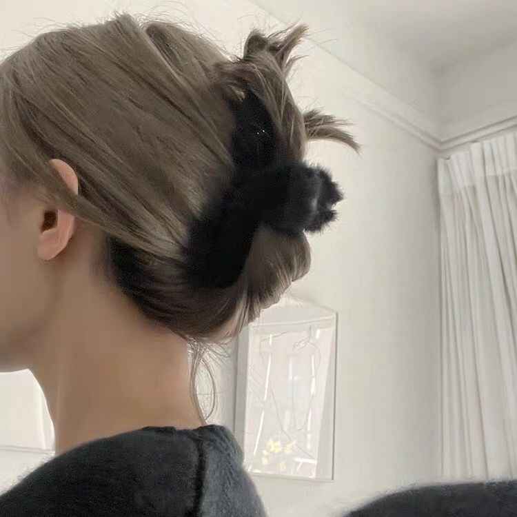 ヘアクリップレトロでエレガントなシンプルヘアピンモコモコの毛つかみサメクリップブラックブラウンカーキの韓国ファッション髪飾り 韓国 ファッショ の 超可愛い女の子 の