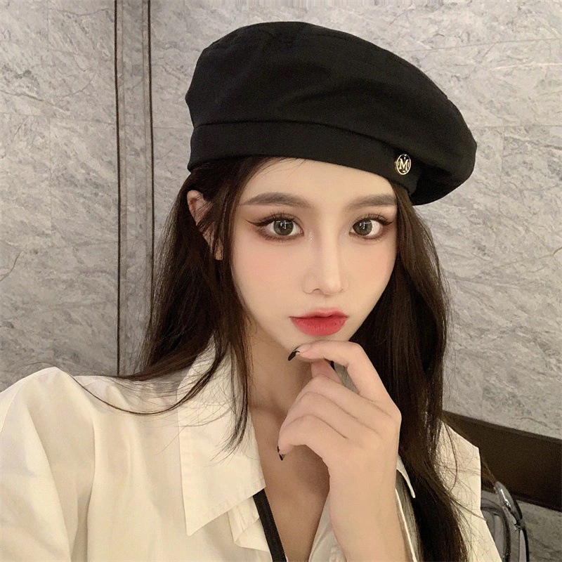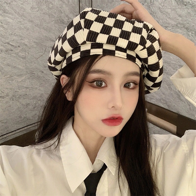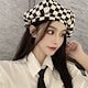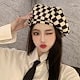 碁盤格子ベレー帽女性ネット赤い雲帽子女性千鳥格日韓画家帽子百合