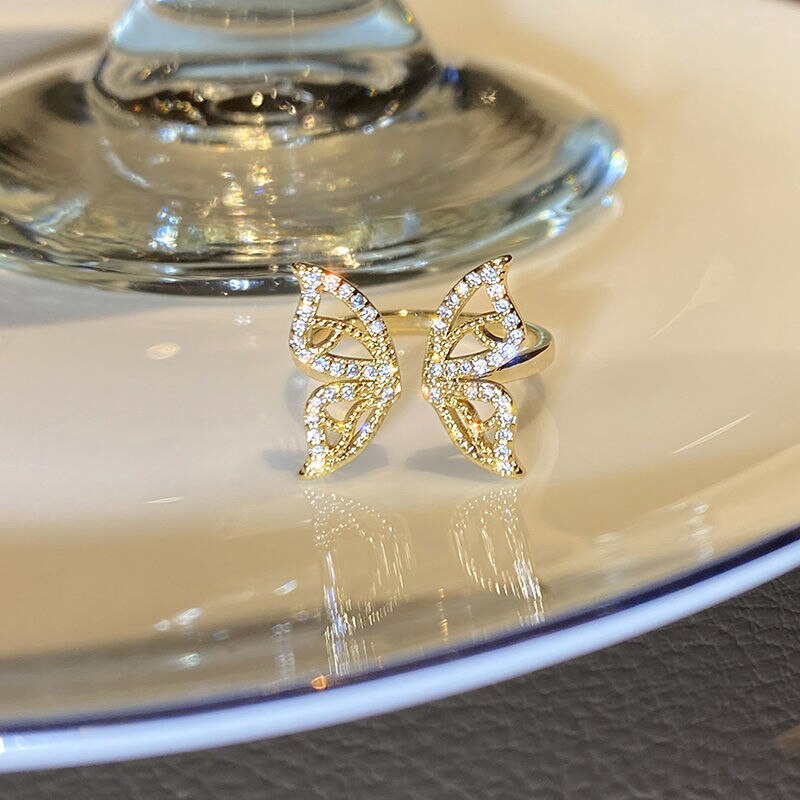 バタフライシークレットレルムラグジュアリーフラッシュダイヤモンドオープンインデックスフィンガー女性