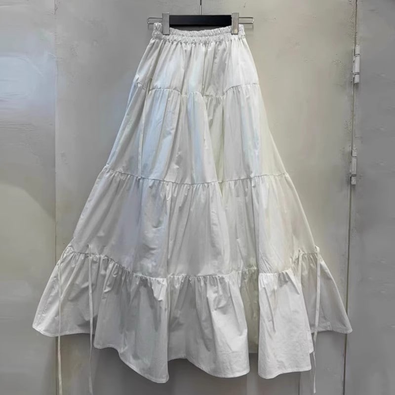 フレアスカート韓国/シック/春/優しい/気質/リボン/装飾/ハイウエスト/万能/無地/Aラインケーキスカート/ビスチェ/女性