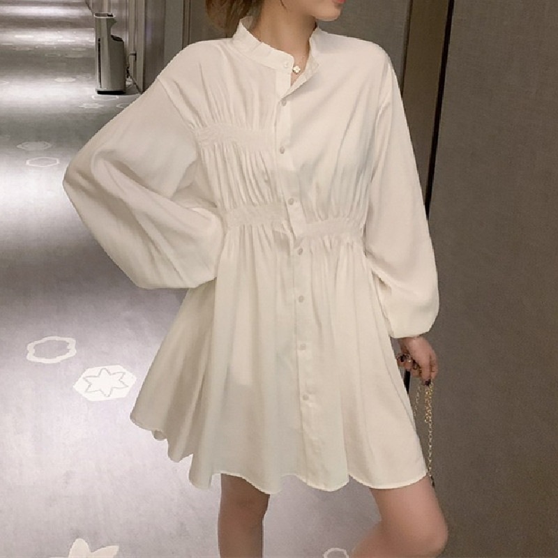 春 新作 ゆったり セミロングシャツ レディース 長袖 ワンピース シャツワンピース プリーツ シャツ ワンピース