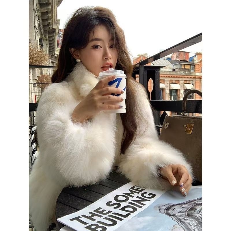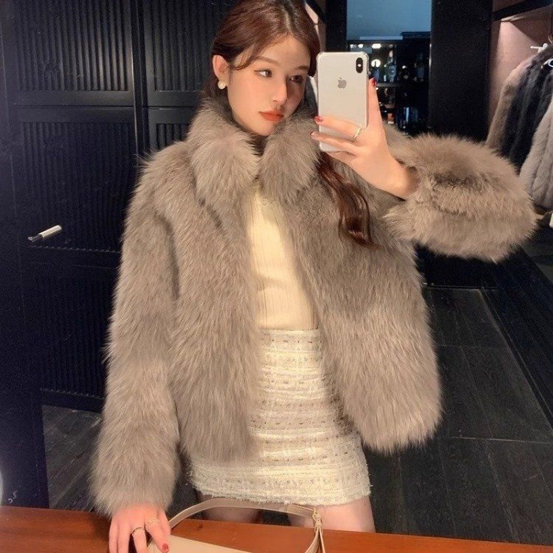 2025年新作 ファッショナブルなキツネ風ファーコート ショート丈 ふわふわ 冬のジャケット 厚手 細身効果 綿入り 韓国ファッション