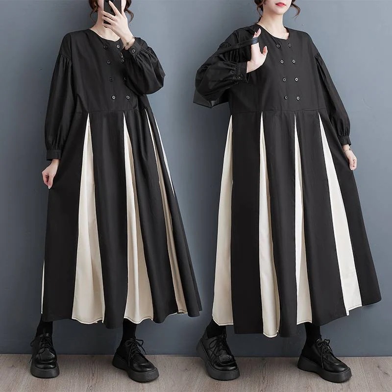 春のワンピース 黑白コントラストカラー ワンピース ゆったり 着痩せ 大きいサイズ ワンピース 気質 ロングワンピース