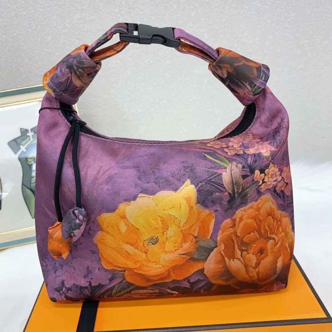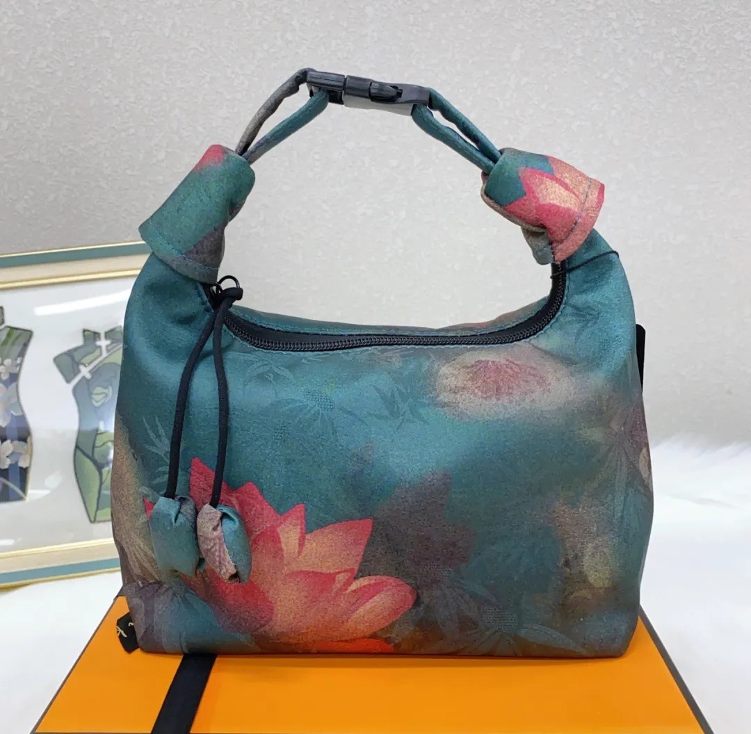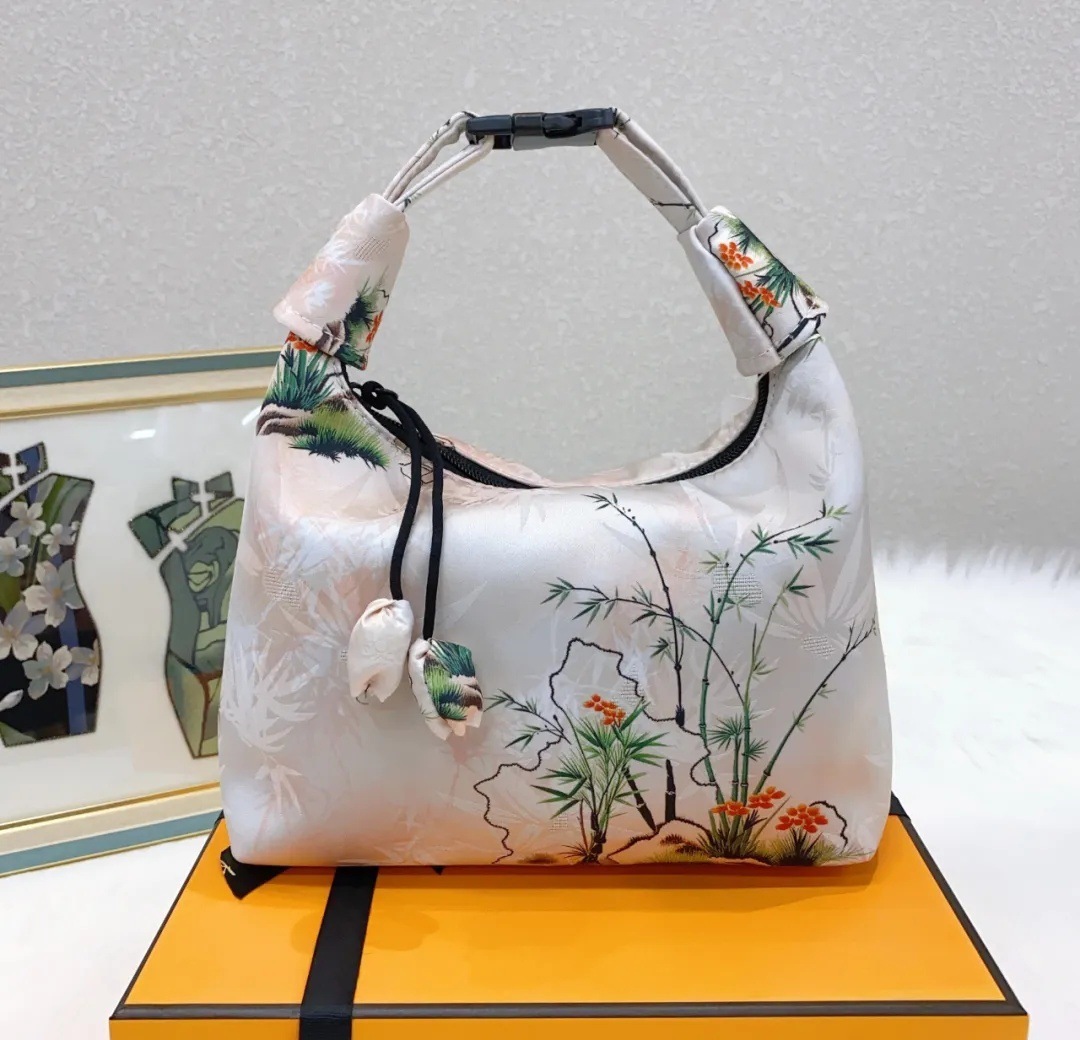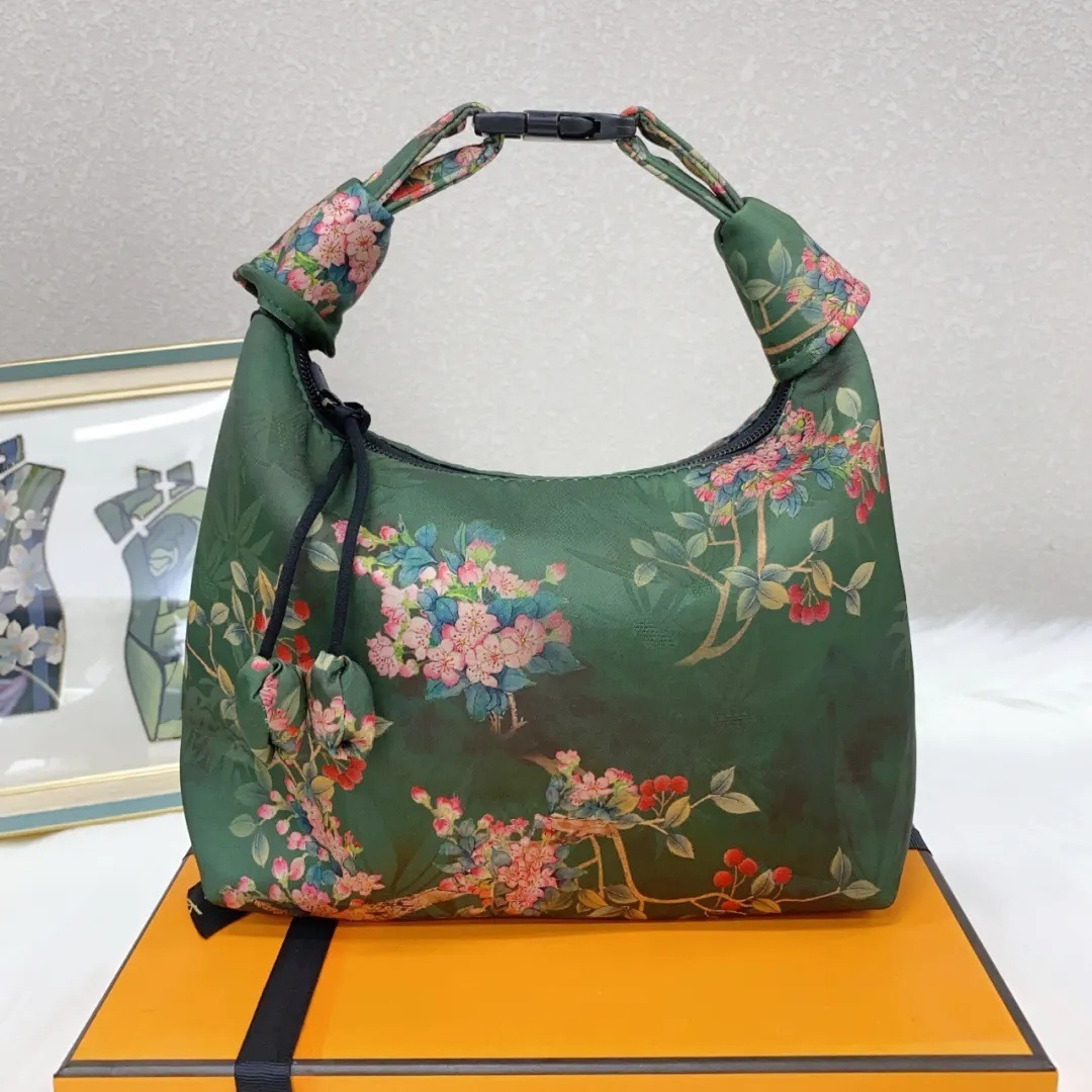 香云纱の月牙包 花萝の暗纹提花 复古手提 可调节包 易携带 国风定位 花包