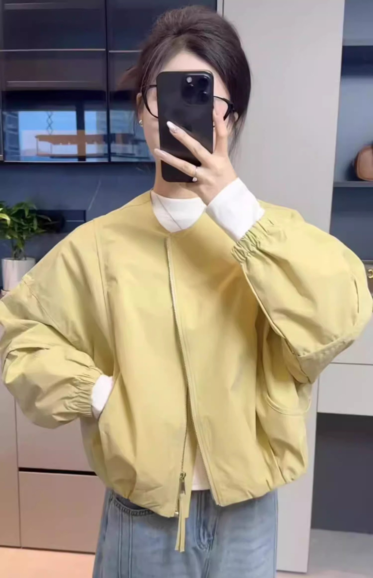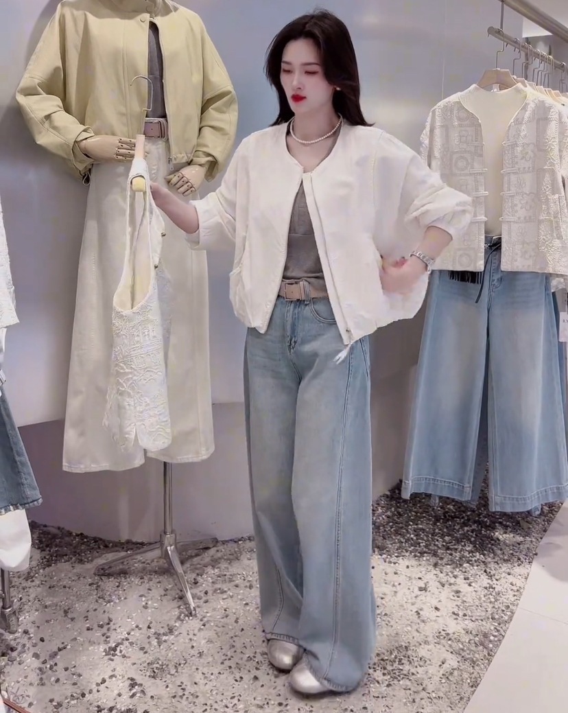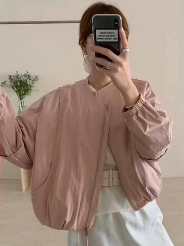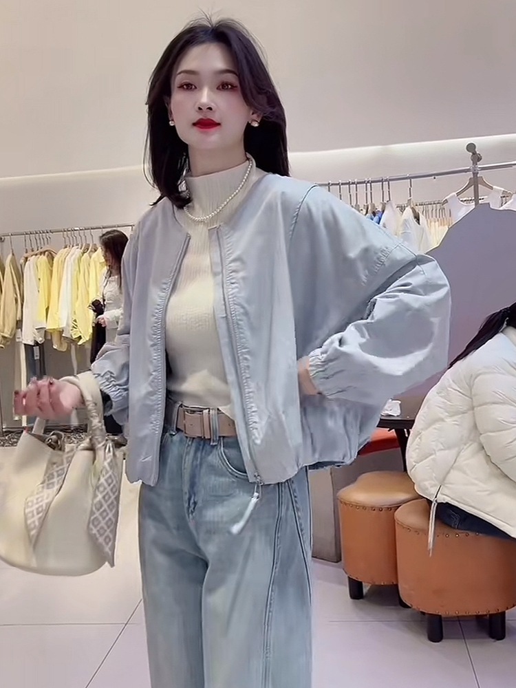 韓国版のシンプルな丸首の純色のショートコートの女性の春の新型のカジュアルでゆったりしています