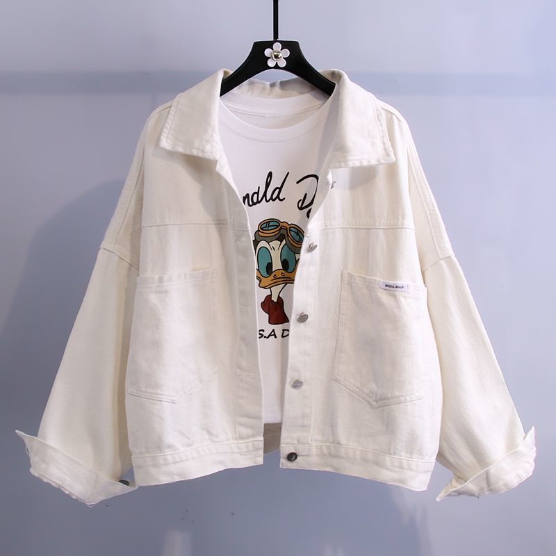 白いデニムのコートの女性と春秋の新型の韓国版はカジュアルなジャケットの小さい子に合わせて上着のファッションを分けます