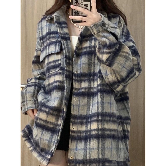 アメリカのレトロな日系の小さい香風の韓国版の新型の街頭のファッションのブランドの毛は格子のシャツの女性の仕事服のジャケットです
