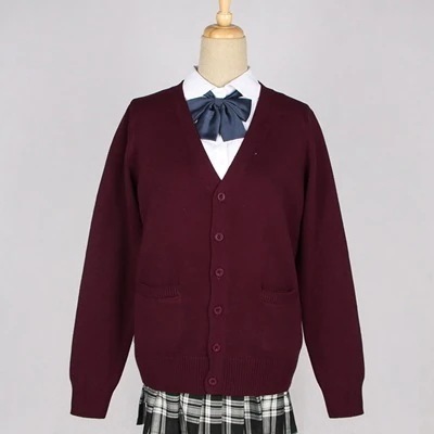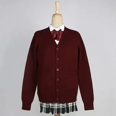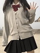 スクール カーディガン ケーブル編み 学生 無地 ゆったり ネック ニット 厚手 裏起毛