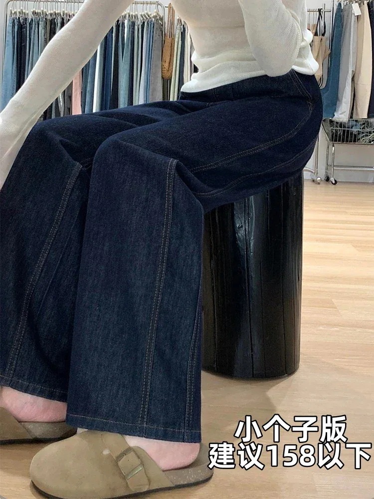 ワイドパンツ 紺デニムジーンズスキニーパンツナローバージョンブロードパンツハイウエスト