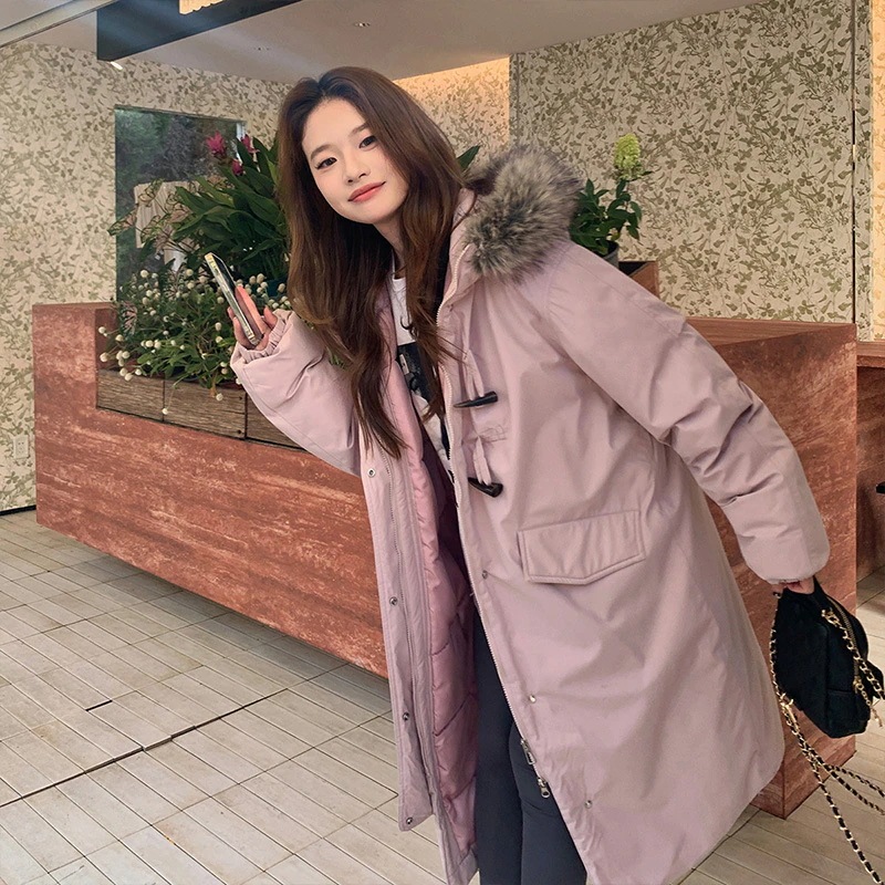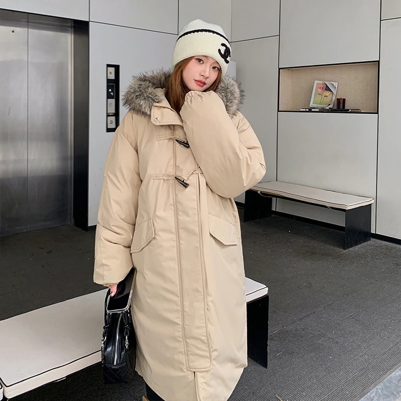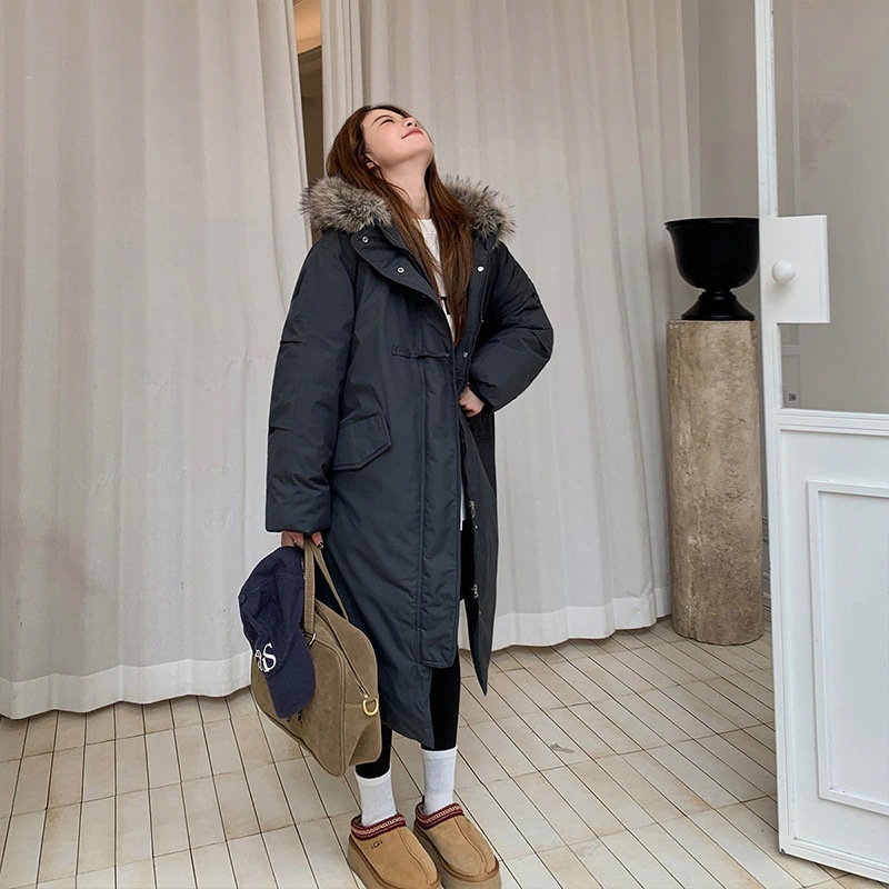 insロング丈ファー付きダウンコート女性用 2025年冬新作韓国風ロング丈ダウンジャケットゆったり保温アウター