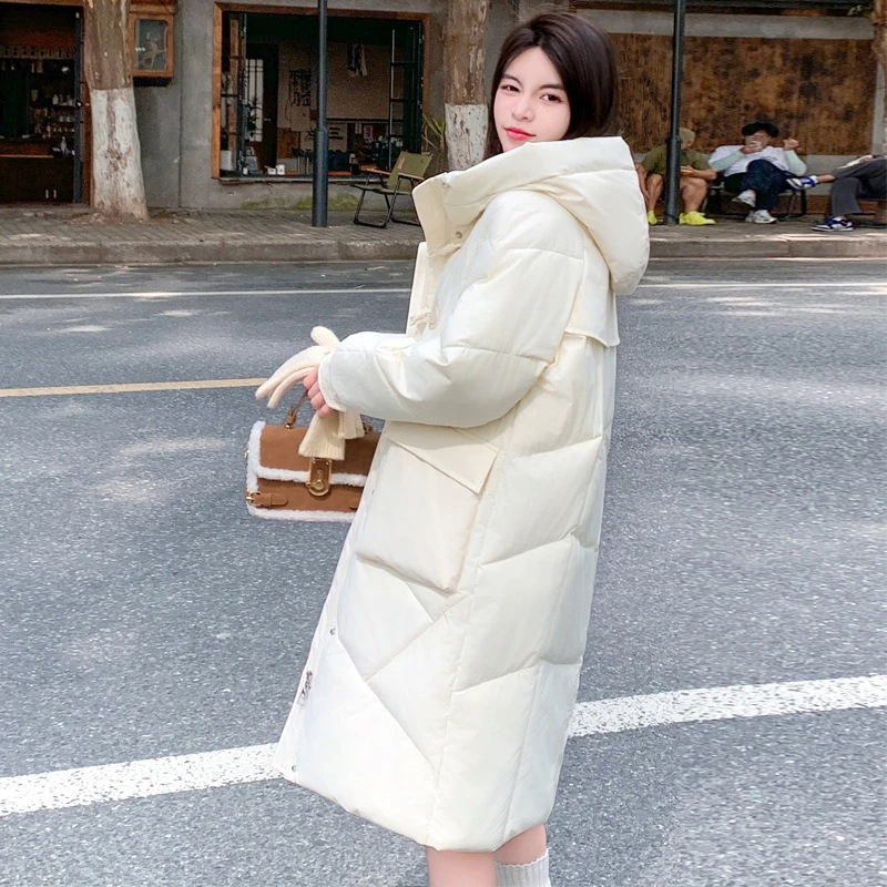冬用牛角ボタン付き厚手ロングダウンコート(女性用)韓国風ゆったり丈ダウンジャケット