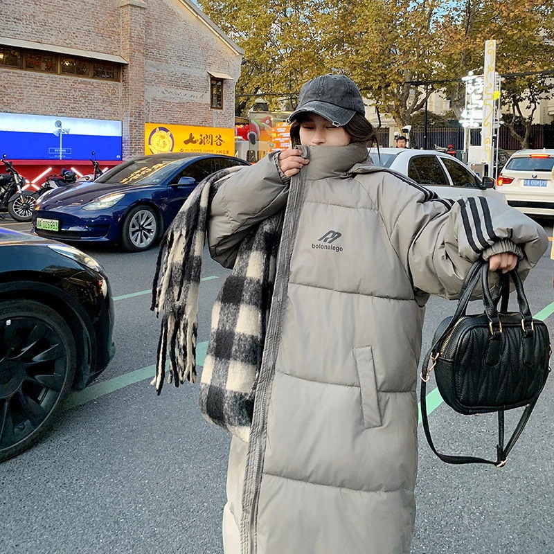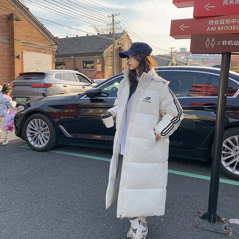 新作保温ダウンコート ロング丈 膝丈韓国風ゆったり三本線ダウンジャケット オーバーサイズアウター