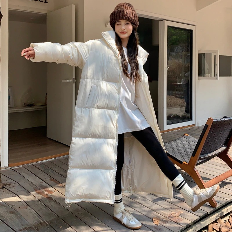 2025年冬 ロング丈 ダウンコート 女性用スタンドカラー 厚手保温 ゆったりシルエット