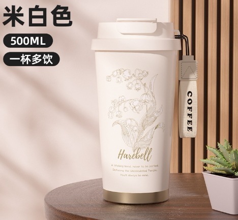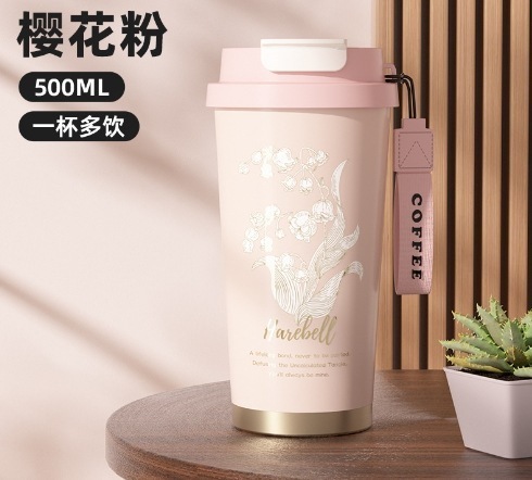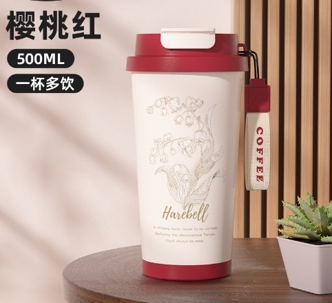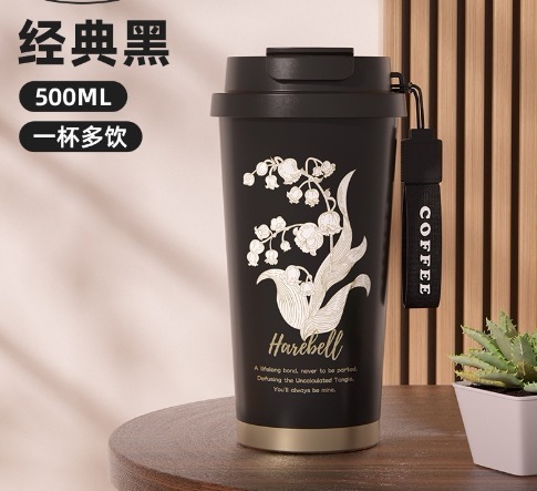 高見えで軽いステンレススズランコーヒーカップ保温保冷ストロー二重ドリンクカップ男女兼用車付属ウォーターカップ