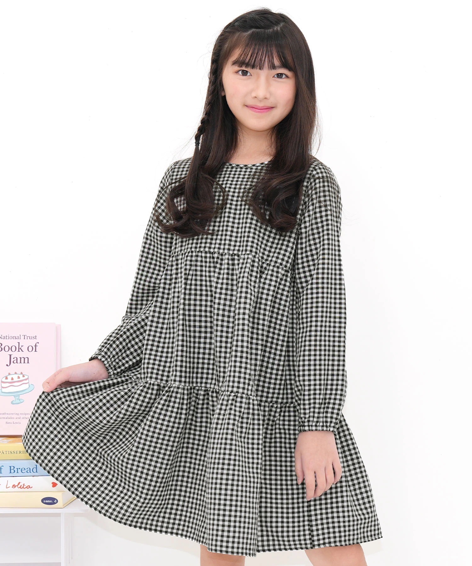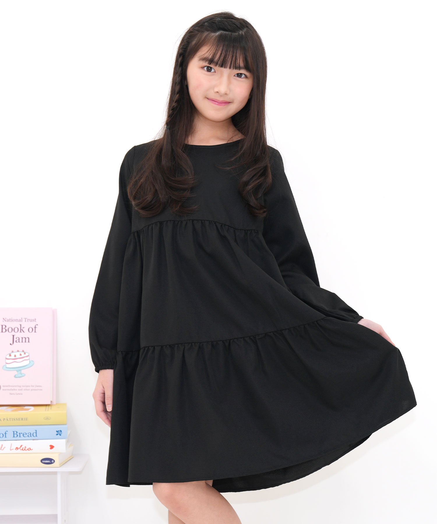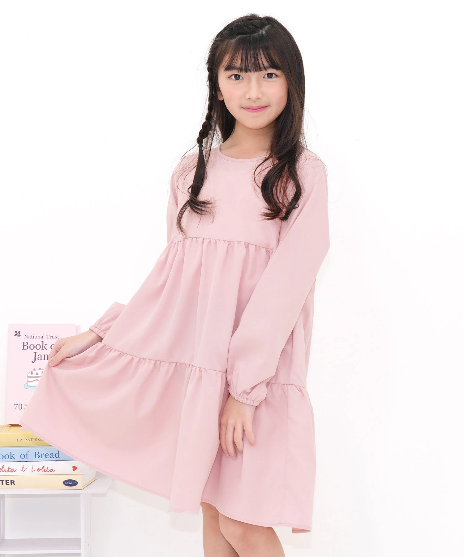 ティアードワンピース 子供服 キッズ 女の子 長袖 ロング 無地 100cm 110cm 120cm 130cm 140cm 150cm 26年SS