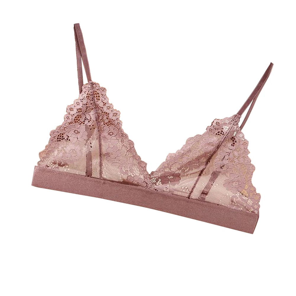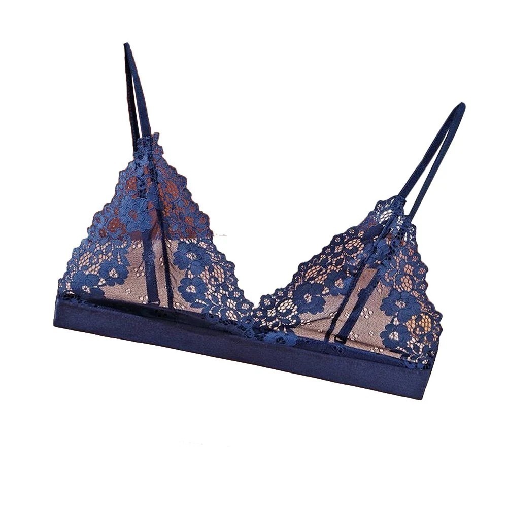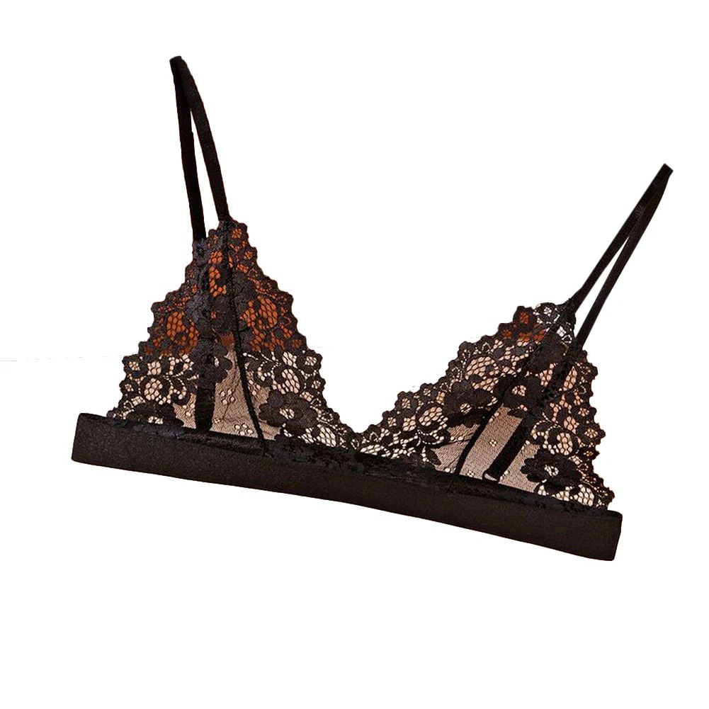 三角ブラ ノンワイヤーブラ ブラジャー 下着 女性用 レディース 婦人 ホックあり 総レース 花柄レース 透け感 シースルー ナイトブラ リラックス