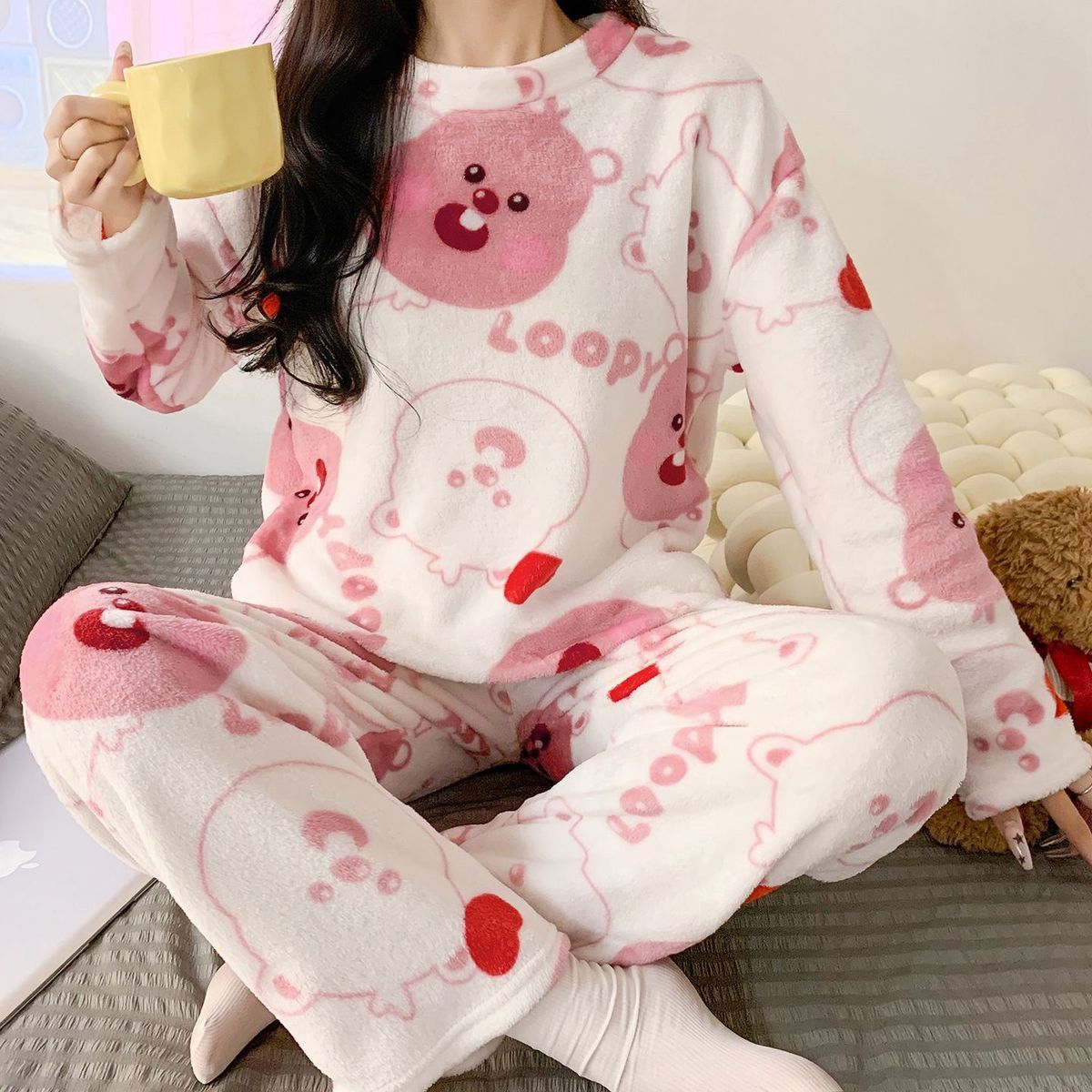レディース パジャマ セット コーラルフリース 秋冬用 加厚起毛 おしゃれ 学生寮向け フランネル ホームウェア 春用