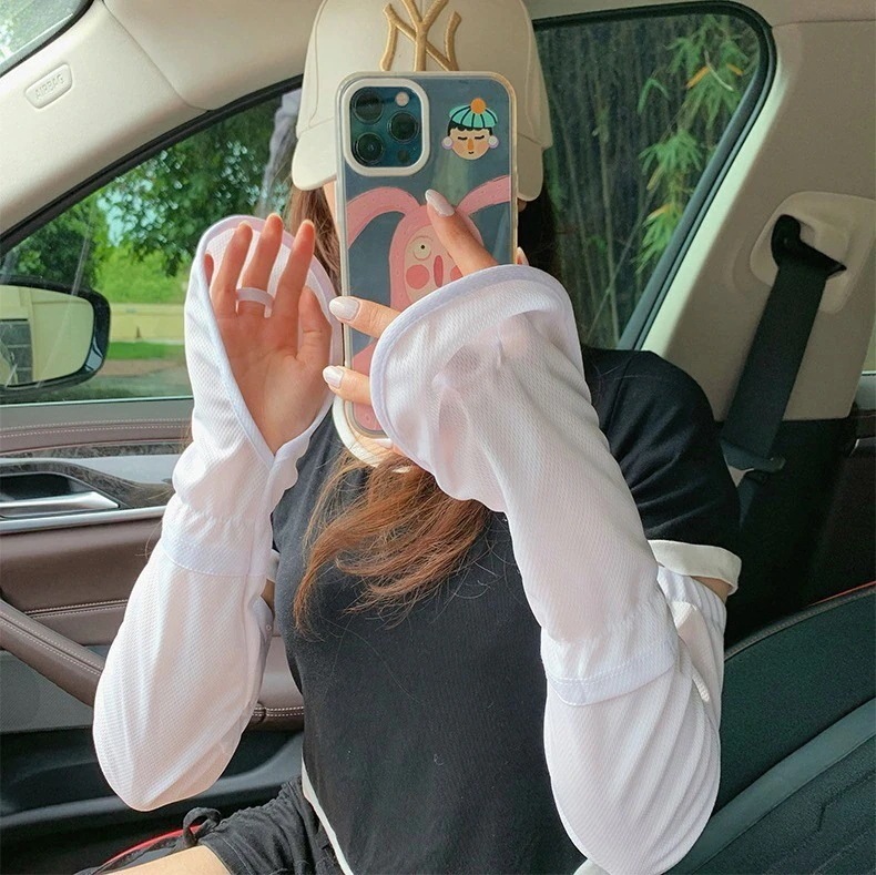 選べる2タイプ 日焼け防止 涼感 接触冷感 指穴付き ひんやり 通気性 指掛け 手袋 指先まで覆うア一ムカバ一 運転用 自転車用 通勤 通