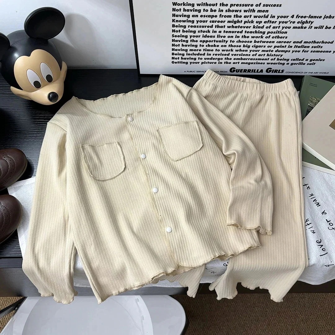 出荷が迅速である新作韓国風女の子用ルームウェアセットベビー用レース付き重ね着用カーディガン新作韓国風女の子用ルームウェアセットベビー用レース