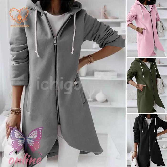 出荷が迅速であるパーカーロングパーカートレーナースウェットファスナーフード付きフェイクレイヤード秋ジャケッきいサイズポケットアウターカジュアル無地パーカーロングパーカートレーナースウェットファスナーフ