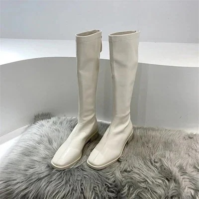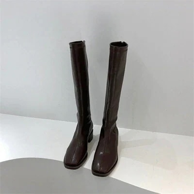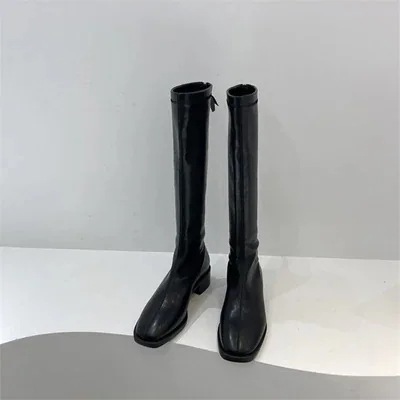 定番 厚底 レトロ ステッチ レザー ロングブーツ シンプルデザイン ジッパー 厚いヒール ロングブーツ 快適な 脚長効果