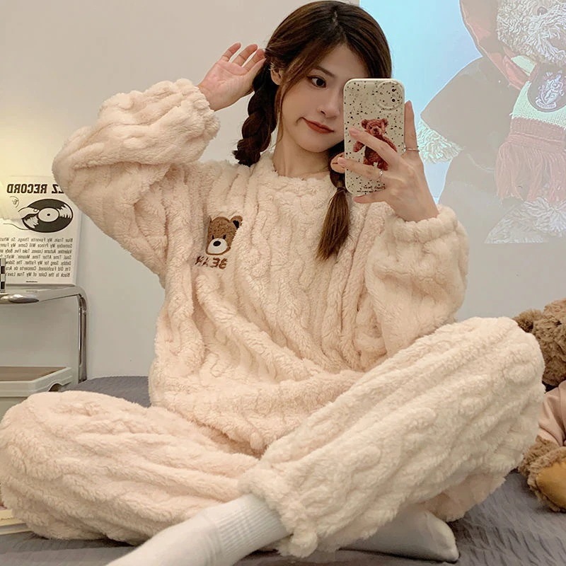 パジャマ ナイトウェア ルームウェア 可愛い 部屋着 あったか レディース 秋冬 スウェット 2点セット 暖かい セットアップ もこもこ 綿 ボアパジャマ 長袖