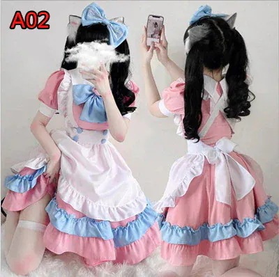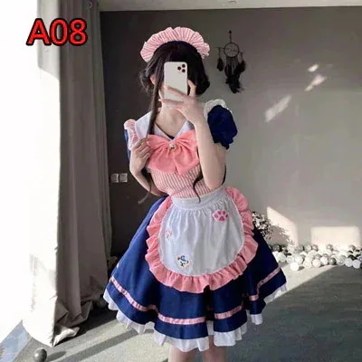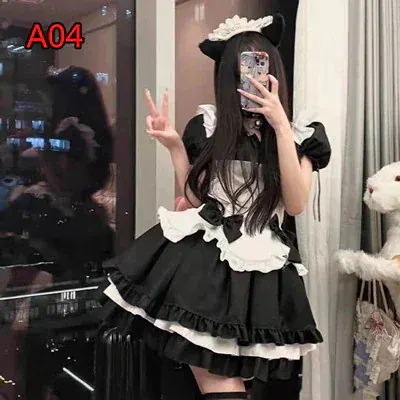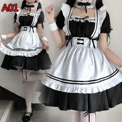 メイド服 着物 コスプレ 衣装 8点セット メイド服 可愛いロリータ 白黒メイド服 コスプレ ビッグサイズ メイド服/仮装