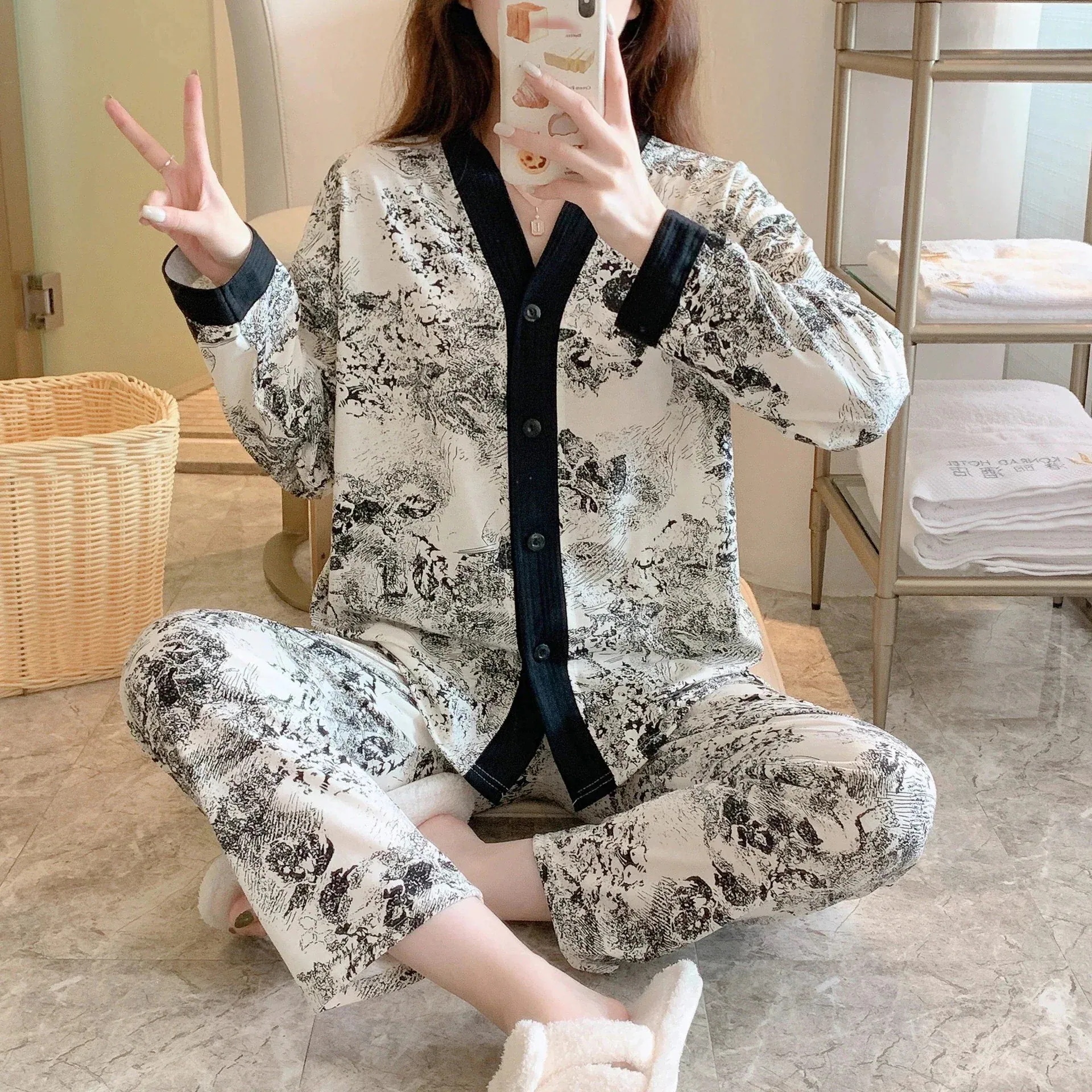 秋 冬パジャマ2点セット かわいい ルームウェア 保温 上下セットレディース 部屋着 韓国ファッション ルームウェアセットアップ