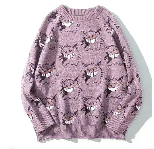 ins大人気新品 ニット ポケモン 総柄 オルチャン 原宿風 可愛い秋冬服 セーター グレー ゲンガー