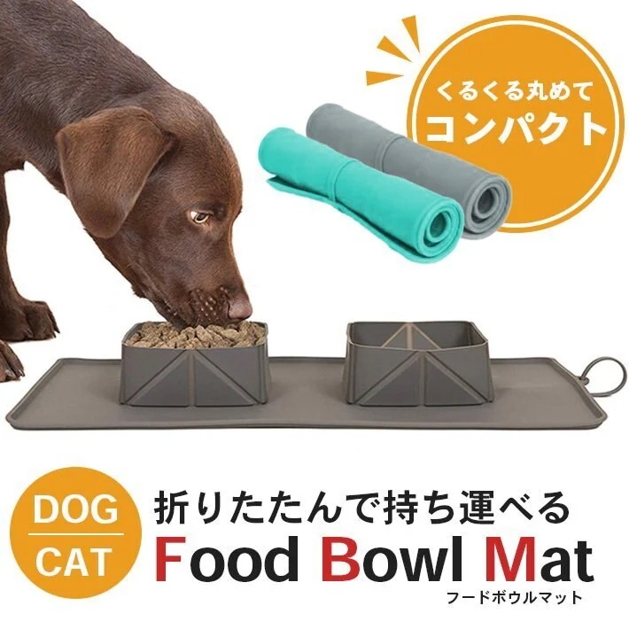 犬 フード 旅行 猫 防災グッズ新流行 シリコン ペット ボウル 新流行 折りたたみマット式全2色 収納袋付き 2連 防水 エサ皿 持ち運び