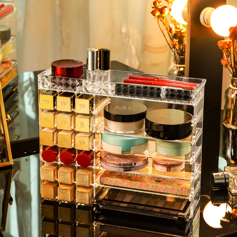 韓国新流行 新流行 収納ボックス 口紅ケースアイシャドウパウダーエアマット収納棚化粧台引き出し仕切り透明化粧品収納ボックス