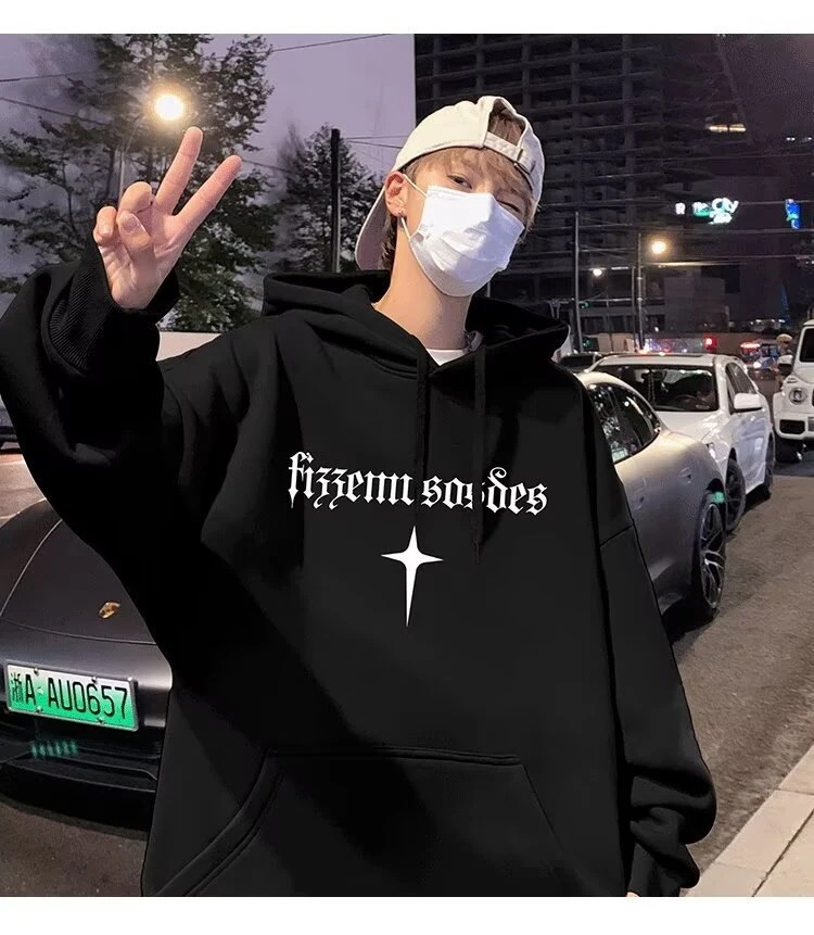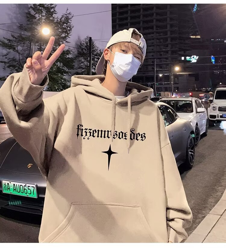 パーカー加絨綿衛衣男モデル港風コートゆったり男子連帽衛衣厚く